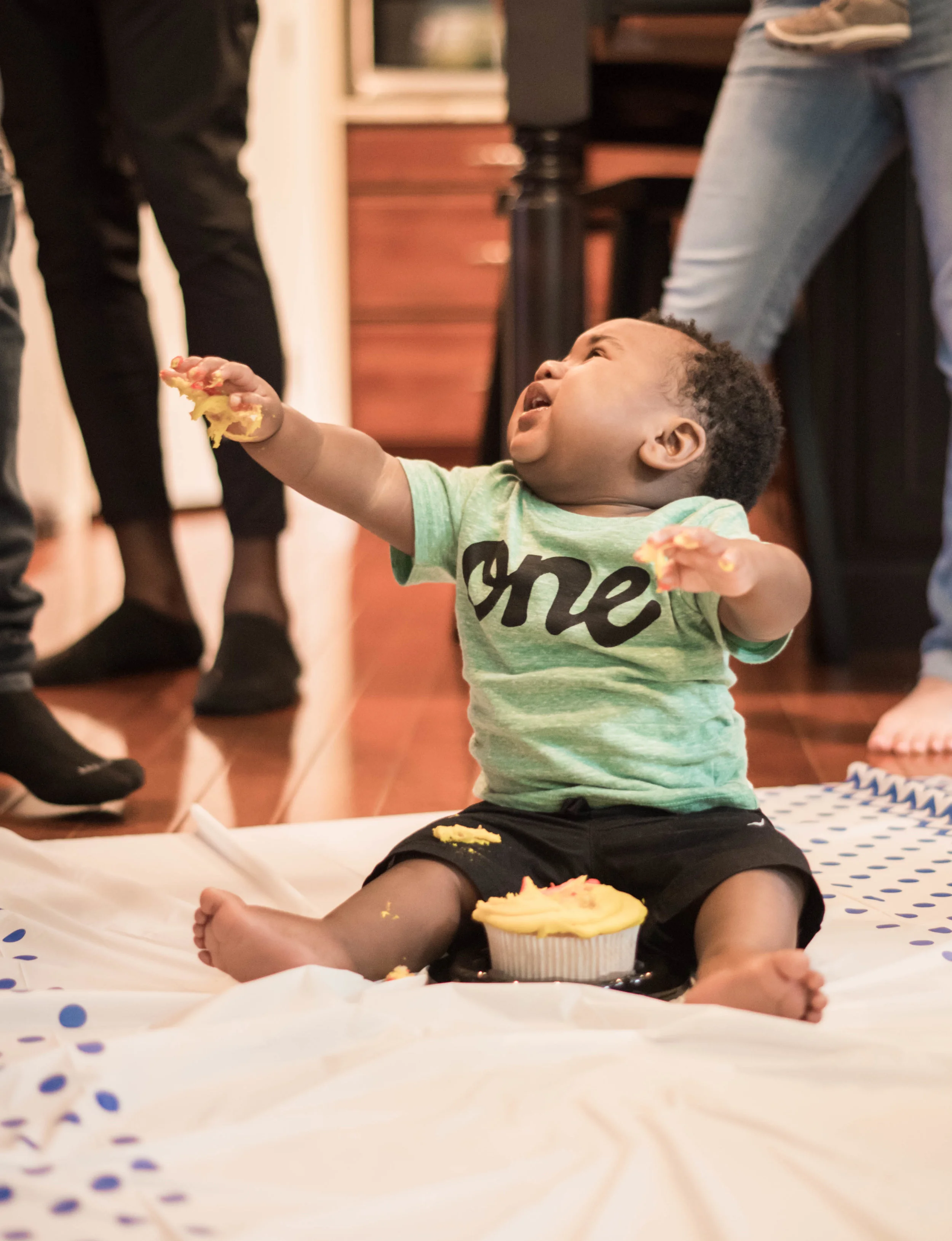 Every time I shoot this sweet boy I can't stop smiling. One look at his beautiful cheeks and eyes and you can't help but fall for him. This time I was lucky enough to shoot his first birthday party filled to the brim with sweet friends. It was so enjoyable watching these kiddos have fun while on this side of the lens, Little Einstein music, tasty cupcakes and all, though Adyn's first impression of cake was a little different :).
